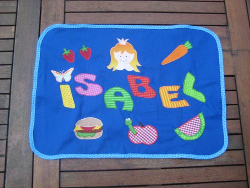 Frühstücksdeckchen aus Baumwollstoff, mit passendem Schrägband eingefasst.