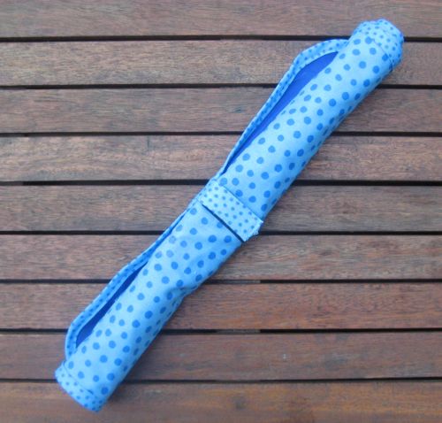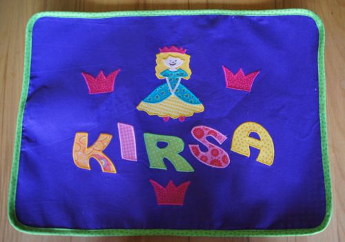 Baumwollstoff, gefüttert mit Volumenvlies und mit Schrägband eingefasst.