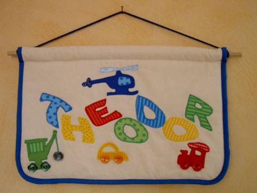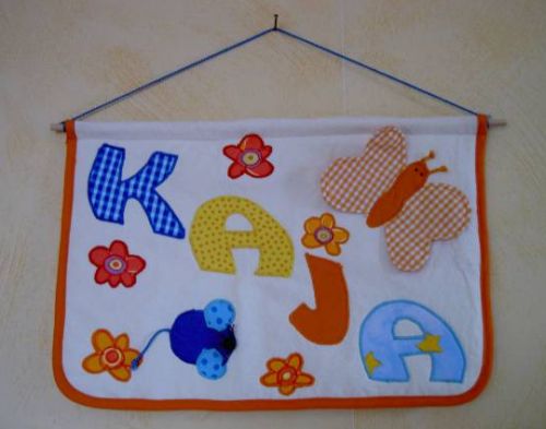 Wandbehang mit NamenKann an Wand oder Tür befestigt werden. Aus beigefarbenem festem