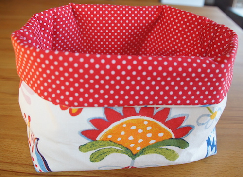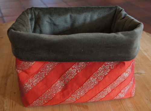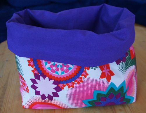 Gefütterter, verstärkter Brotkorb aus gemusterten Baumwollstoffen, auf Wunsch gewachst.
