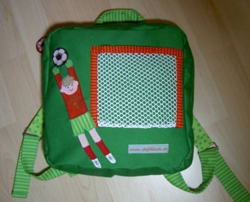 Fußballfans) und einem Tor aus Netzstoff, der als Außentasche dient (mit