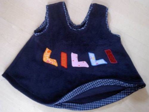 In A-Form geschnitten. An Hals- und Armausschnitten mit passendem